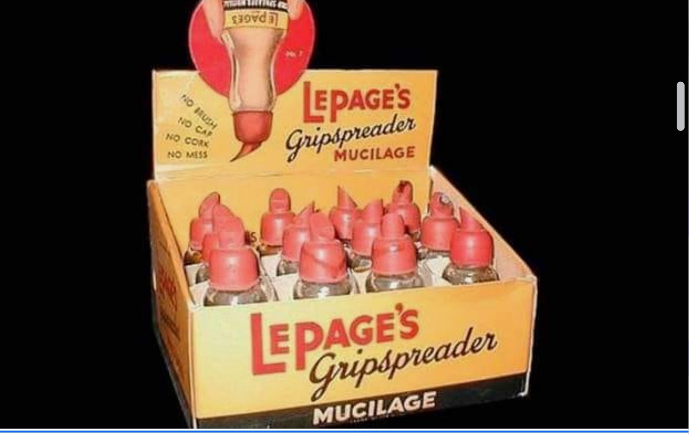 Lepages glue is stuck in my memory from Grade 2 in Oakville back in the 60's and the nipple-like 'spout'.
