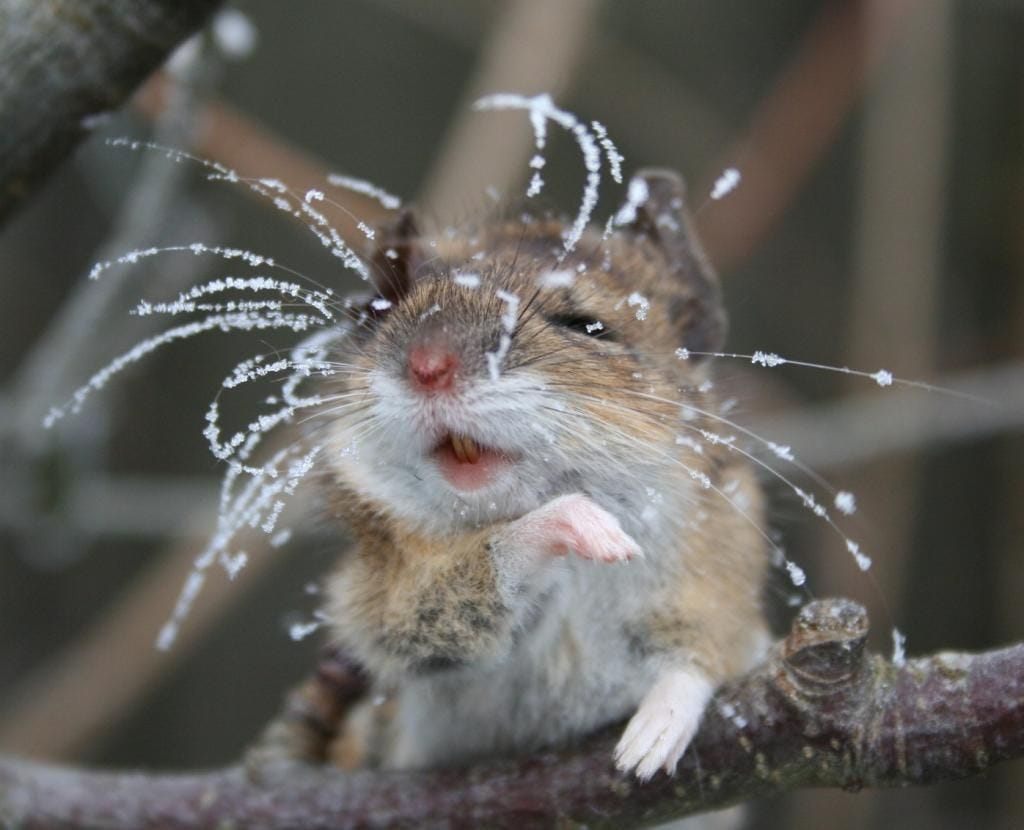 Visual interlude featuring mouse with frozen whiskers
