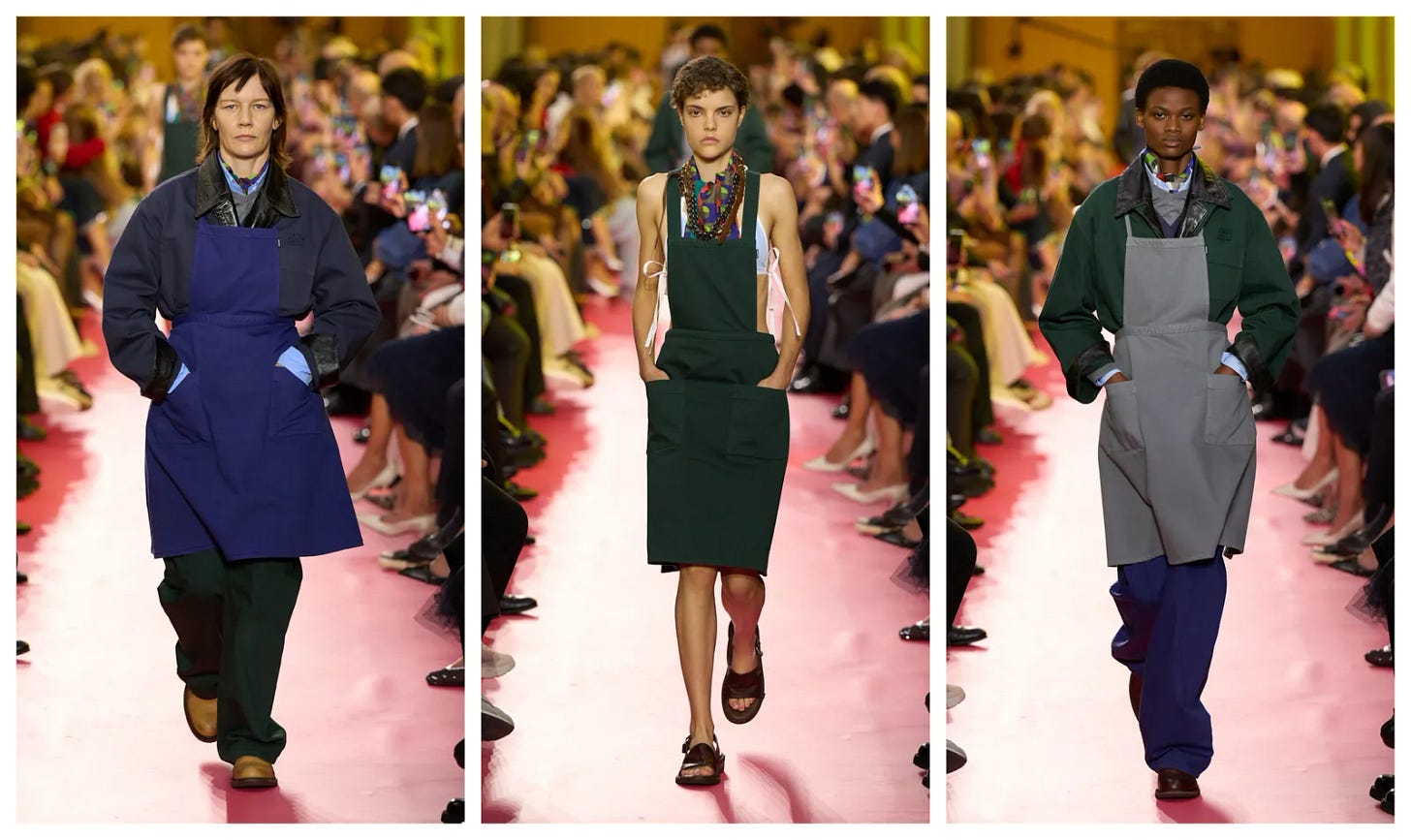 But let’s ease into the idea of work slowly by looking at spring fashions. Miu Miu’s Spring 2026. “I’m interested in the lives of women in general, which is why I love aprons. The apron is a recurring theme in my work because it is symbolic of women’s sufferance … It’s an emblem of women’s despair, their poverty, their passions.—Miuccia Prada
